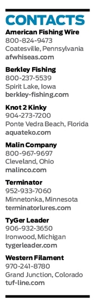 “It’s a Spectra fiber core inside, with braided T-304 extruded stainless steel around the outside,” says Ted Thibault, sales manager at Tuf-Line. “The leader was engineered and designed for toothy fish. It’s a flexible, tie-able bite leader that doesn’t kill the action of the bait.”