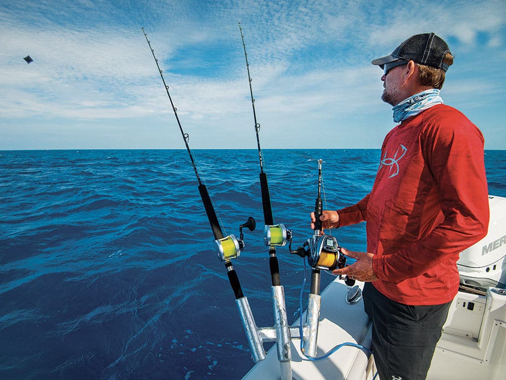 The higher a kite flies, the more wind it catches. So on really light-wind days, put the boat in gear to get the kite up, says Slaga. “That might mean starting in much deeper or shallower water, depending on the wind direction and current. Once the kites get well past the T-top, often there’s enough wind to keep them flying without the need for a balloon. A lighter kite line also helps.”