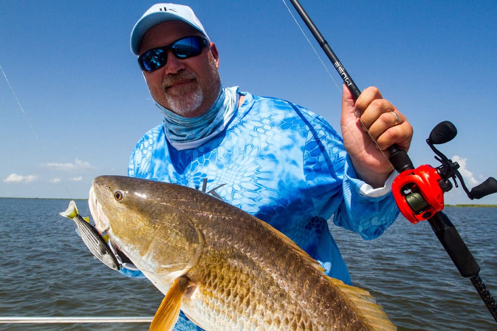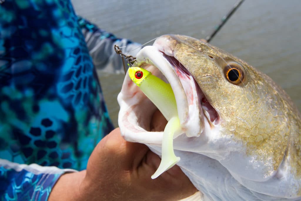 Anglers fish for redfish using lures, live bait and dead bait. This is a popular tournament species and a fun one to target by sight-casting. Reds often feed on crabs in marsh grasses, and their tails can be spotted waving above water. A precise cast can earn an instant hookup.