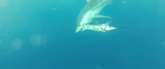 See this estimated 400-pound mako rip into a sailfish.
