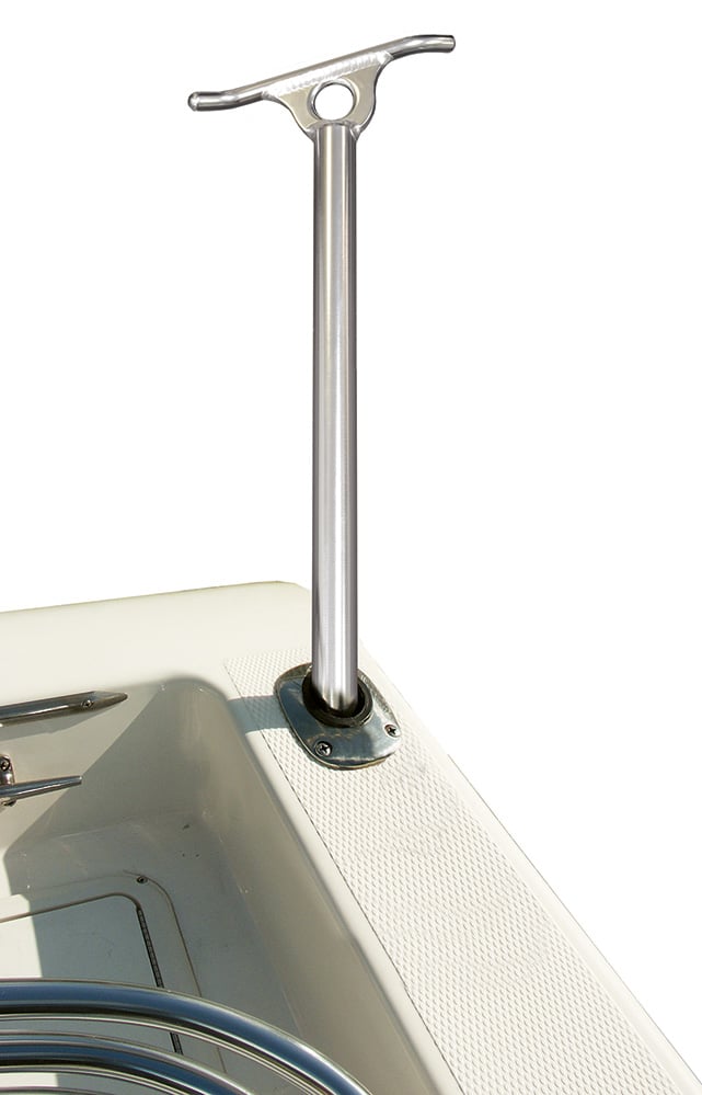 Keeps dock lines safe from outboard motors when tying off at the stern.